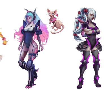 Think about personality, poses, clothes, colours and details. This is perfect for concept art, character sheets or videogame assets.