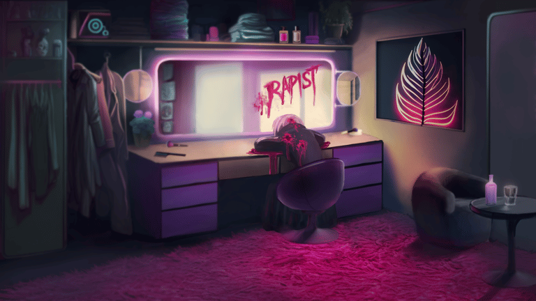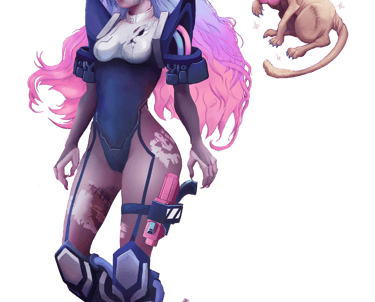 Un celeste bebé y rosa chicle con adorables detalles neón. Combinación de elementos futuristas y colores suaves nos sumerge en un mundo distópico lleno de ironía y violencia.